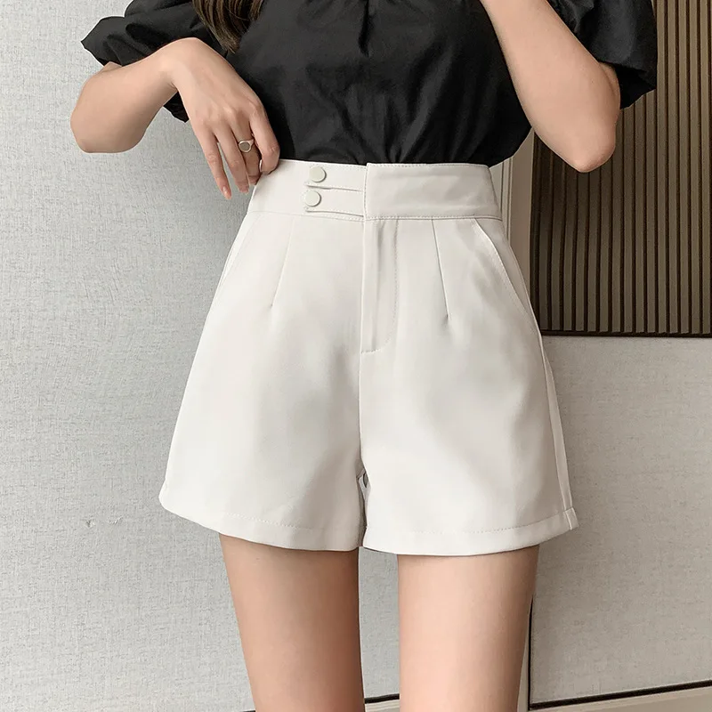 Addition Information of Nouvelle Mode Coréenne Solide Lâche Combinaison Short Femme Taille Haute Jambe Large Décontracté Pantalon Court Élégant Dames Poche Short Noir