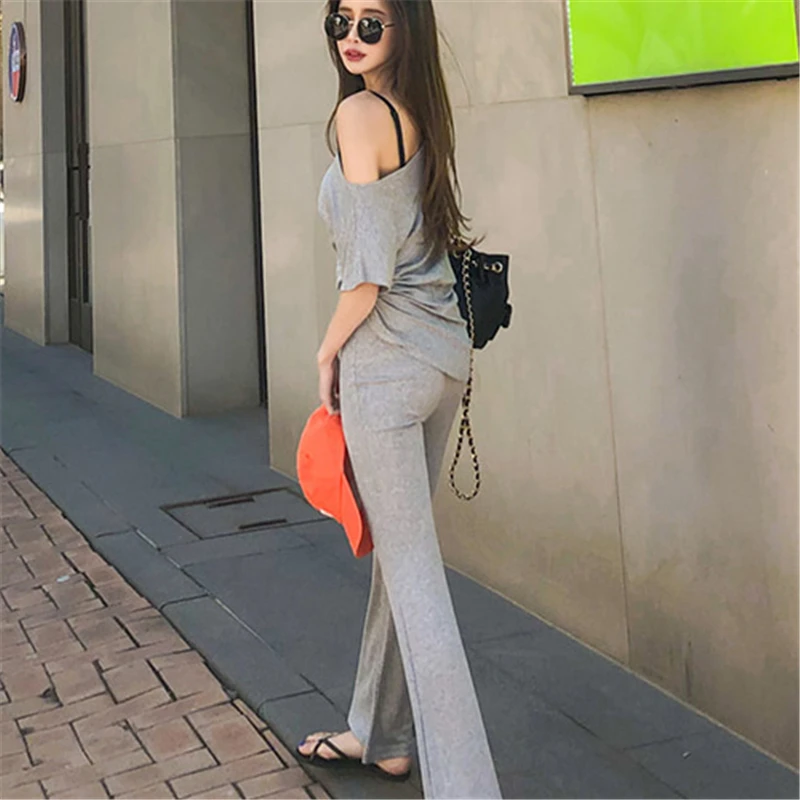 Addition Information of Chándal para mujer, conjunto de 2 piezas, camiseta Sexy con hombros descubiertos, camiseta con cordones, juegos de pantalones largos, trajes para mujer Sp656
