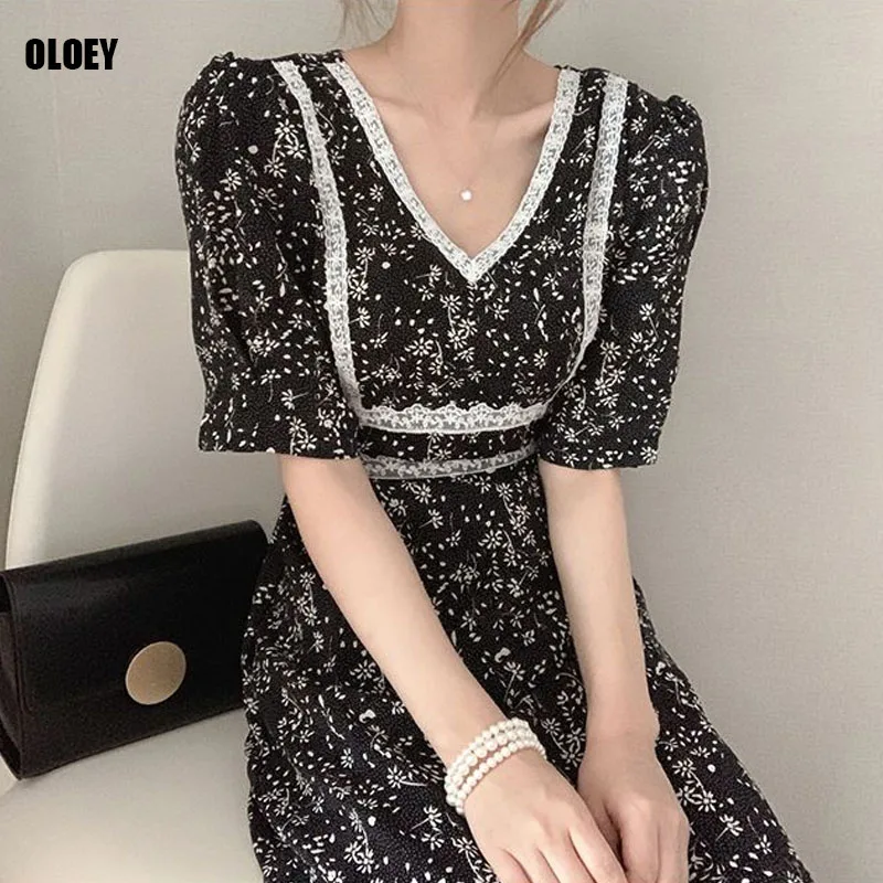 Vestido de gasa de una pieza con cuello en V para mujer, novedad de verano 2021