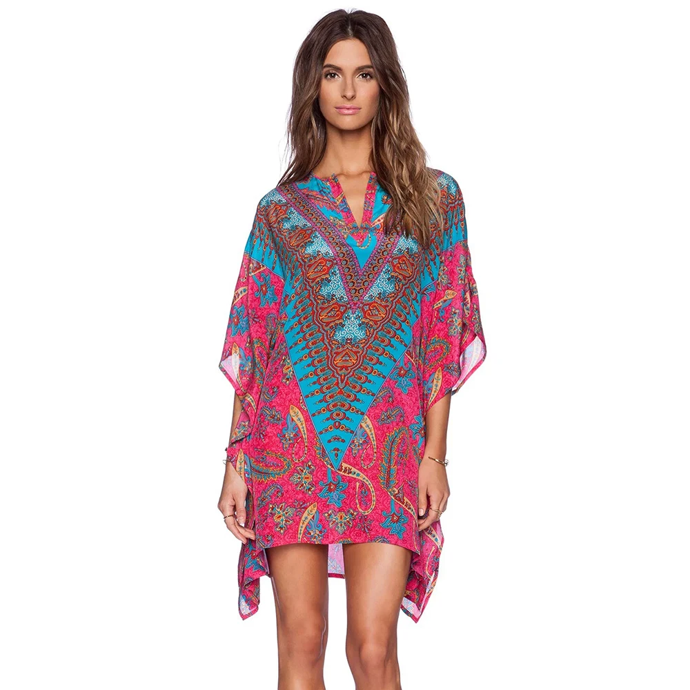 Free Shipping Suelto con cuello en V De las mujeres vestido manga murciélago estampado De tótem étnico De talla grande túnica Boho vestido, Vestidos De Mujer Cheap Product let's order now and You will Save USD 0 or 0% %, Because You Just Pay for 25.99 not Full Price for 25.99