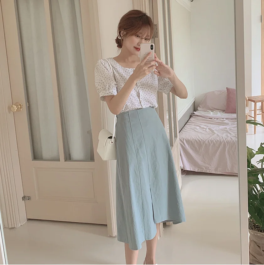 Addition Information of Nuevas chicas blusa de verano de las mujeres traje de camisa Tops de manga corta alta cintura imprimir una línea faldas trajes de dos piezas de vender por separado