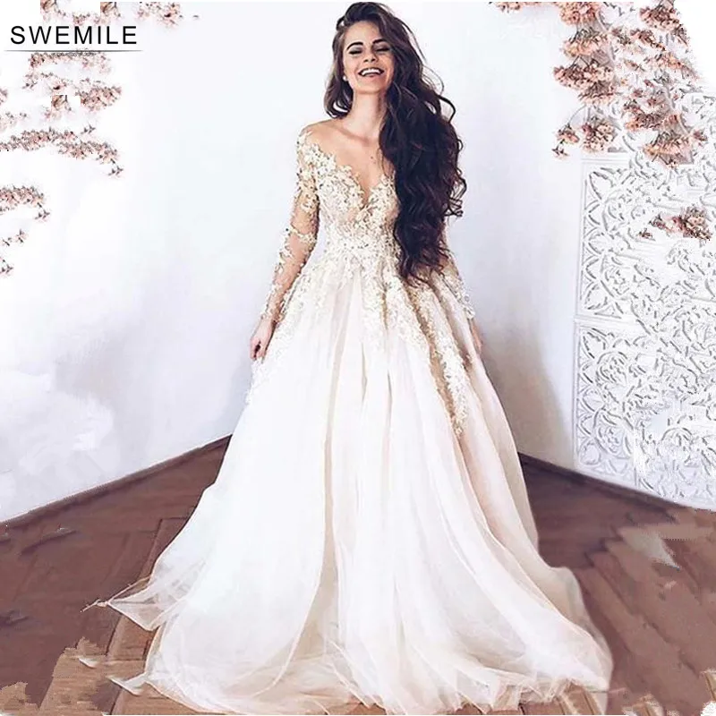 Free Shipping Vestidos De boda románticos De encaje De tul, ilusión Sexy, Vestido De novia De manga larga, Fairy A Line, vestidos De novia Cheap Product let's order now and You will Save USD 6.29 or 35%, Because You Just Pay for 11.69 not Full Price for 17.98