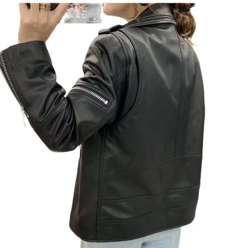 Free Shipping Chaqueta corta de estilo dorado para mujer, traje pequeño de cuero con cuello levantado, para primavera y otoño, 2021 Cheap Product let's order now and You will Save USD 0 or 0%, Because You Just Pay for 57.88 not Full Price for 57.88