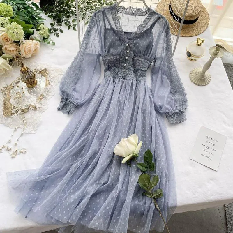 Addition Information of Coreano Vintage vestido de las mujeres de primavera y otoño 2021 moda Vestido de manga larga de una sola pieza elegante señoras vestido de fiesta vestidos