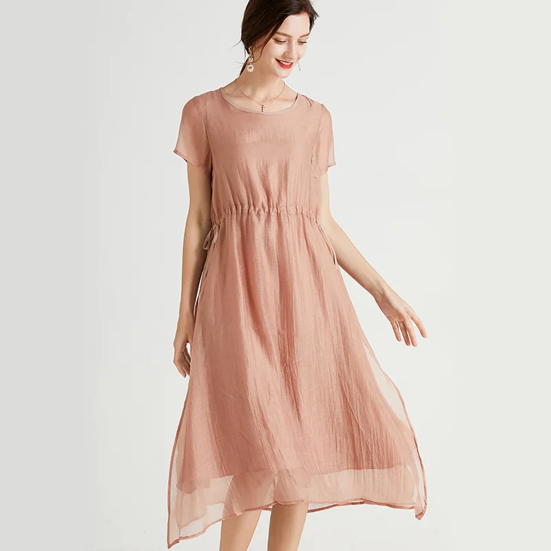 Publier un commentaire for "Vestido de gasa de seda para mujer, elegante, a la moda, de talla grande, Rosa, Verde, básico, para fiesta, 4XL"