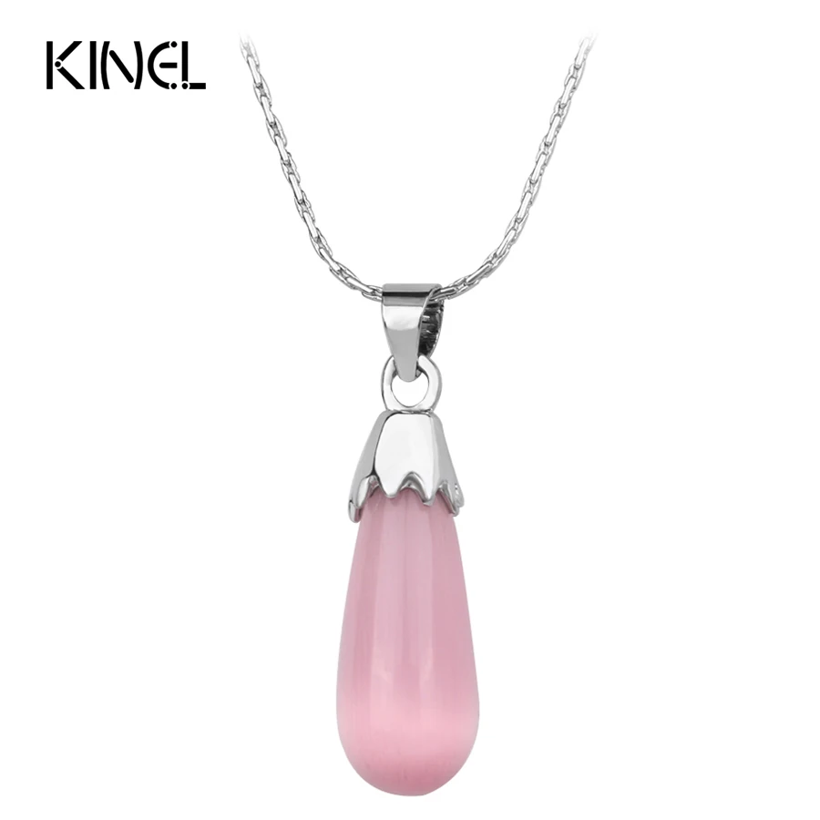 Beautiful Pink Opal Necklace Silver Plated Water Drops Pendant 45CM Fine Chain Fashion Jewelry For Women 2016 L Y Brand