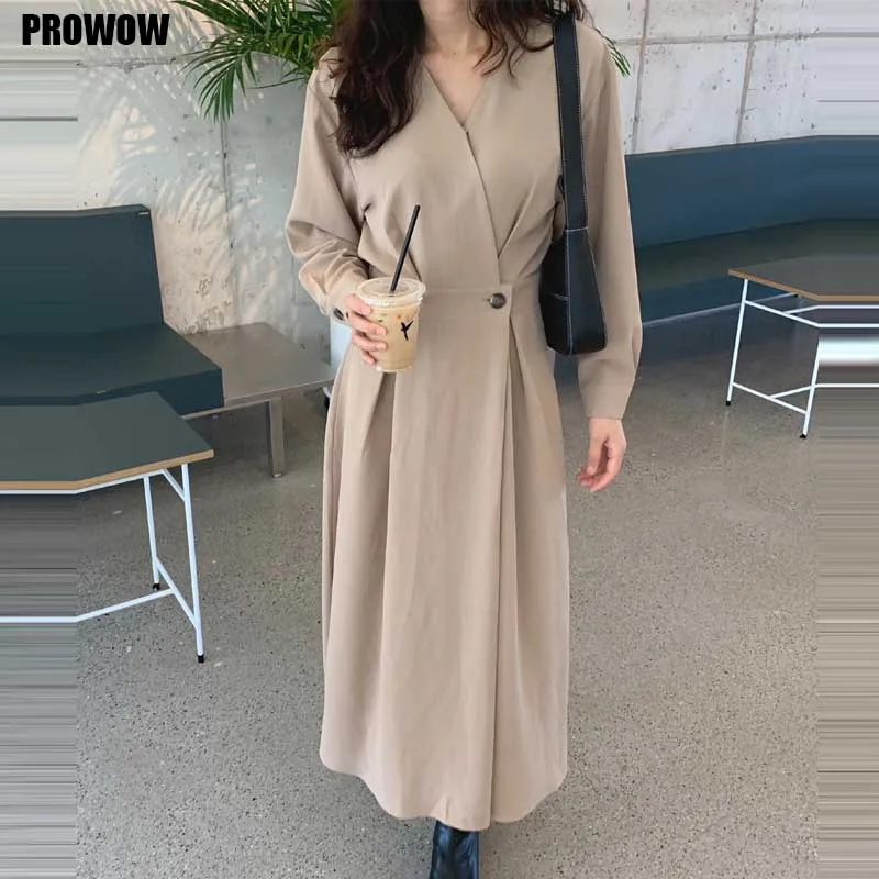 Related Product for and Nuevo 2021 mujeres primavera otoño camisa vestido coreano de una sola pieza, moda Vestido de manga larga francés elegante vestido de oficina vestido Midi