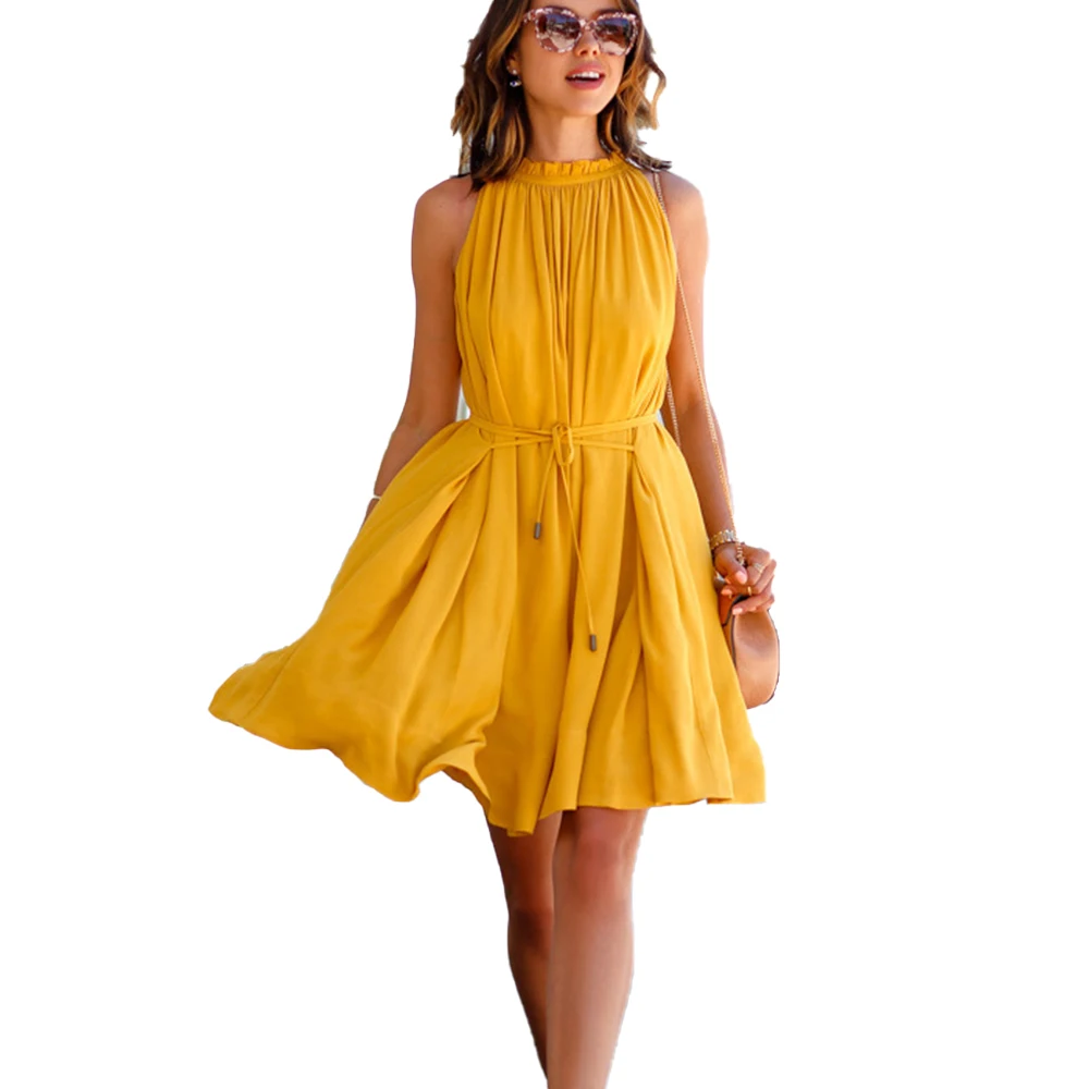 Related Product for and Verano rayas Patchwork vestido Irregular vestido de mujer cuello cinturón contraste de Color de moda de señora Casual vestidos