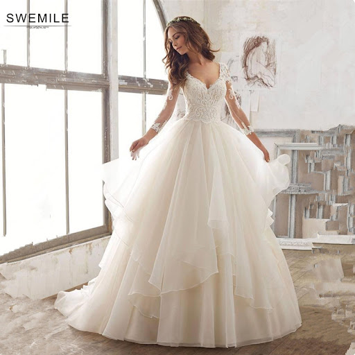 GALLERY PRODUCT Special Offer of SWEMILE bola Vestido De encaje Vestido De boda escalonado 2019 traje De Mariee 3/4 manga Vestido De novia Sexy vestidos De boda Vestido De novia